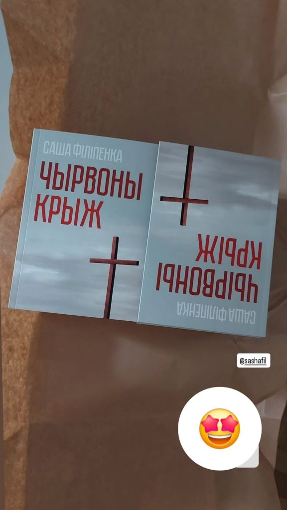 Выдавецтва Gutenberg, якое раней анансавала выхад раману Сашы Філіпенкі “Чырвоны крыж” у перакладзе на беларускую мову, апублівакала фота з надрукаванымі кнігамі ў сваім інстаграме.