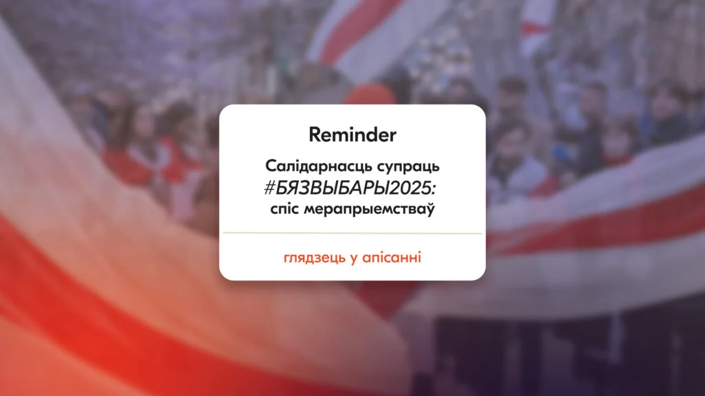 Беларусы па ўсім свеце аб’ядноўваюцца, каб сказаць «НЕ!» фарсу пад назвай #бязвыбары2025. Аснова нашай сілы – салідарнасць. Далучайцеся да акцыяў у вашым горадзе, каб выказаць сваю нязгоду з палітычным «спектаклем» рэжыму Лукашэнкі, а таксама падтрымаць беларускіх палітзняволеных і адно аднаго.