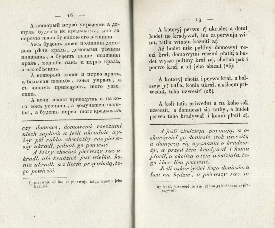 А которыи бы сами собою порубы делали, а любо наезды чинили: ино, кому сталася кривда, тот и маеть ся нам жаловати; а пакли не пригодиться нас у великом князьстве Литовьском, и он имаеть паном раде нашей жаловати; и паном воєводам нашим по того послати и велети перед собою моцно поставити, а и досмотрети: будеть ли то так чинил, а всадити его у казнь и держати до нашего щасного приеханиа: бо тот ис права земьского выступил а над право сягнул, как у верху писано. Мы, пан, снемься с паны радою нашою великого князьства Литовського, осмотрим того, какою казнью того казнити.