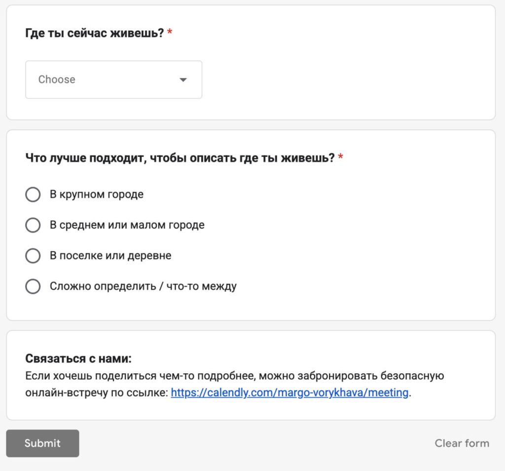 Унутры апытання збіраюць e-mail, звесткі пра ўзрост, месца жыхарства і род заняткаў. Пры гэтым стваральнікі прыкрываюцца імем Маргарыты Ворыхавай — прадстаўніцы Святланы Ціханоўскай па справах моладзі.