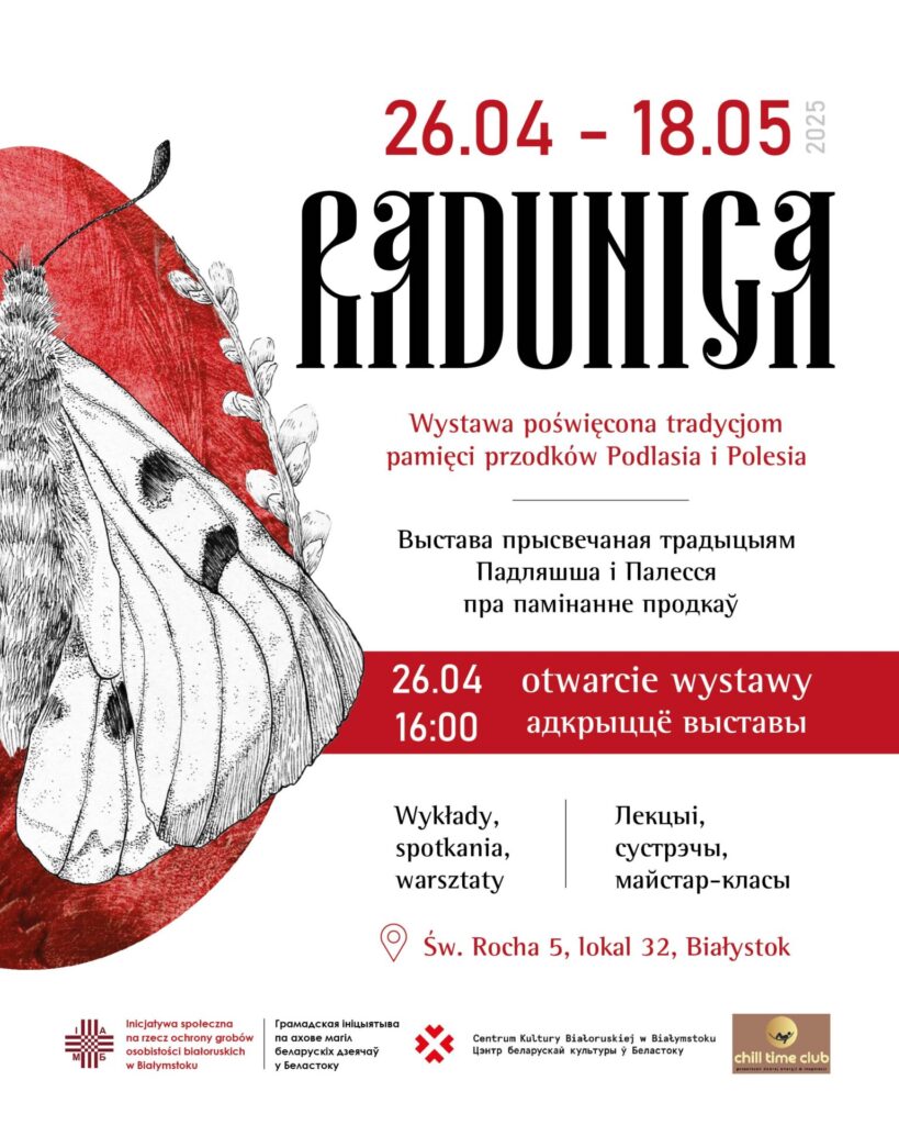 Выстава “Радуніца” адбудзецца ў Беластоку з 26 красавіка па 18 траўня 2025 года. Імпрэза пройдзе ў Chill Time Club, на вул. Святога Роха, 5/32, якое будзе адкрыта для наведвальнікаў з 9-і да 21-й. Уваход вольны.