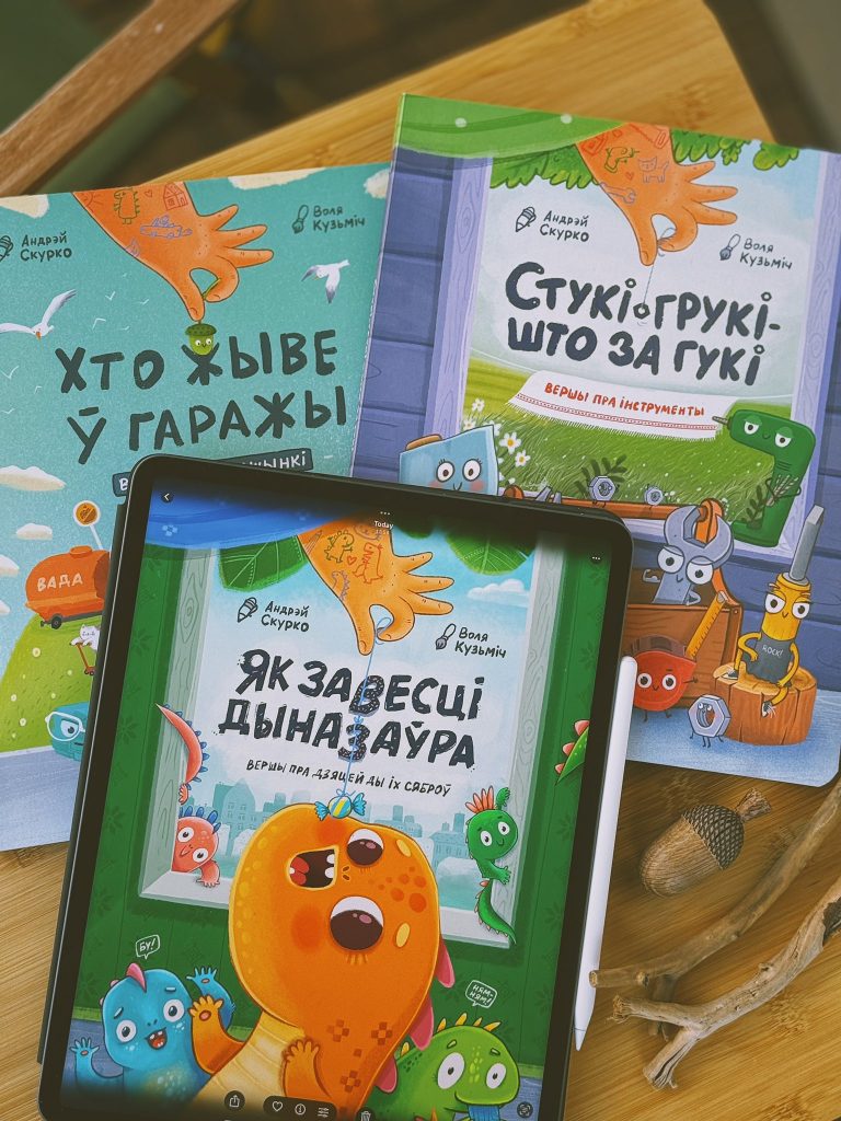 “Кніга друкуецца ўжо! <…> Вокладку ўжо рассакрэчваю. Трэцяя кніга ў нашай калабарацыі з Андрэем Скурко — «Як завесці дыназаўра»! Бо якое дзяцінства без дыназаўраў?” — дзеліцца навіной мастачка Вольга Кузміч у сацсетках.