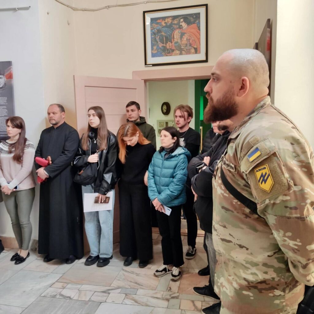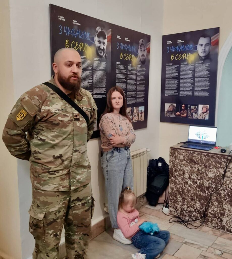 – Гэта 24-я лакацыя, дзе была ўрачыста адкрыта выстава «З Украінай у сэрцы». Прысутнічала жонка Змітра Рубашэўскага (пазыўны Ганс) разам з дачкой. Яны распавялі пра беларускага героя. Таксама прысутнічаў камандзір «Азова», ён распавёў пра беларуса, які загінуў на «Азоўсталі».