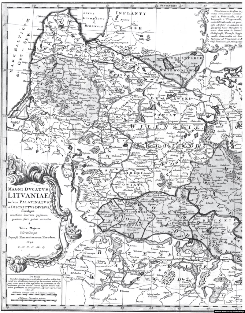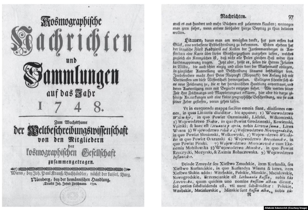 Апошняе выданьне было ў 1812 годзе, калі ВКЛ ужо не існавала. Яно вельмі рэдкае. Тады з аднаго боку была Расейская імпэрыя, а з другога боку Напалеон. І невядома, хто гэтую мапу падрыхтаваў — ці была гэта беларуская шляхта, альбо ўвогуле гэта быў, як цяпер бы сказалі, „хайп на тэме“: нямецкае выдавецтва, разумеючы, што будзе запыт, выдала такую мапу», — выказаў думку Аляксей Адамовіч.