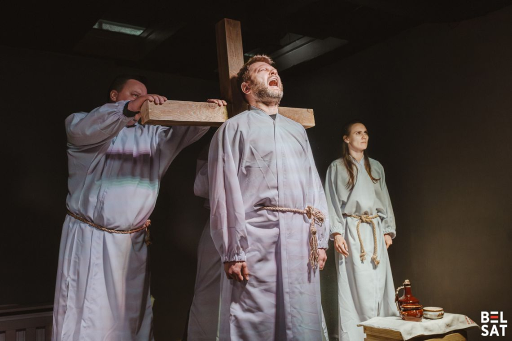 У фінальнай мізансцэне героі ахутваюць крыж сваім беласнежным убраннем і зверху накладаюць чырвоную стужку. Сімвал. Кастусь Каліноўскі раскідвае рукі: «Так будзе. Верце мне. Мы выйдзем».