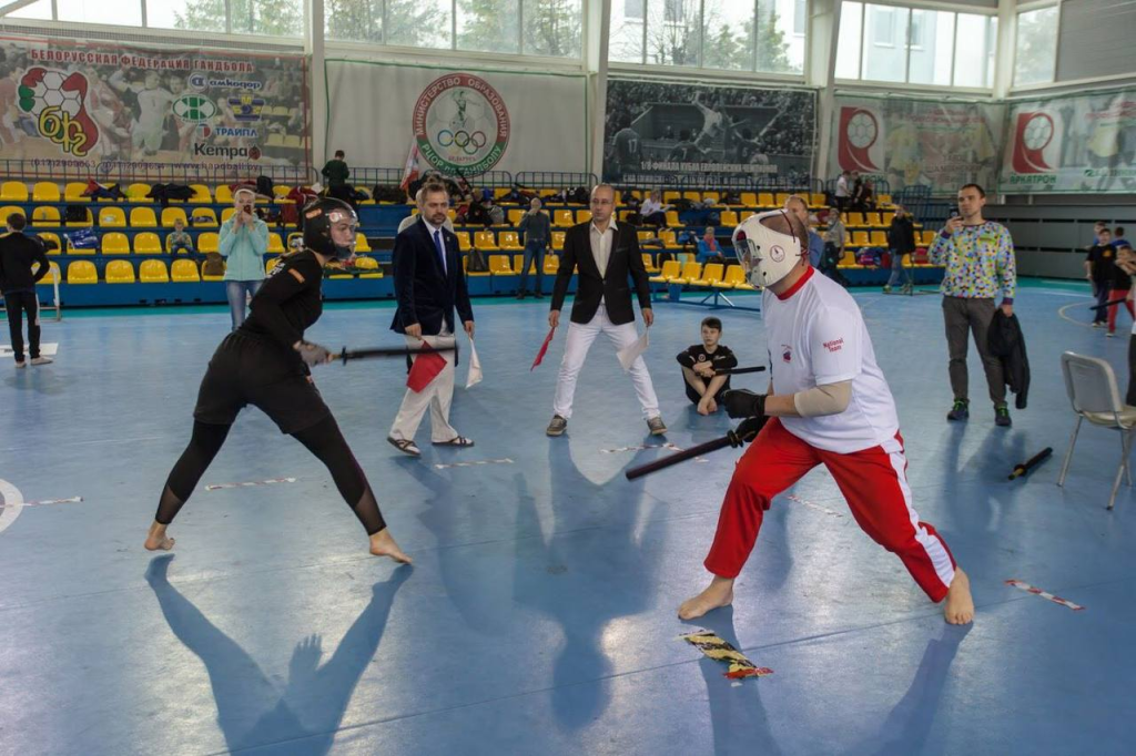 Мне казалі, хто бачыў: «Вы там б’ецеся палкамі!» То гэта не палкі. Паколькі ўнутры паветра, меч мяккі. Ім можна біць у поўную моц, і не пакінеш слядоў, наогул нічога. Але гук ад удара моцны, і гэта залічваецца, як добры ўдар.