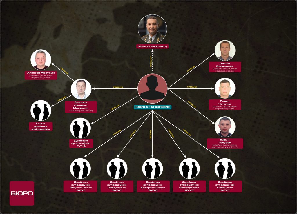 Журналісты «Бюро» атрымалі і прааналізавалі 80 тамоў гэтай крымінальнай справы. У іх мы знайшлі сведчанні таго, што гандаль наркотыкамі гадамі «крышавалі» супрацоўнікі сілавых ведамстваў. На допытах гучалі імёны «апекуноў» і былі названыя расцэнкі за «крышу». Аднак гэтую інфармацыю следства палічыла за лепшае праігнараваць. У выніку ніхто з сілавікоў, на якіх паказалі фігуранты, не панёс пакарання. Практычна ўсе яны працягнулі працаваць у органах.