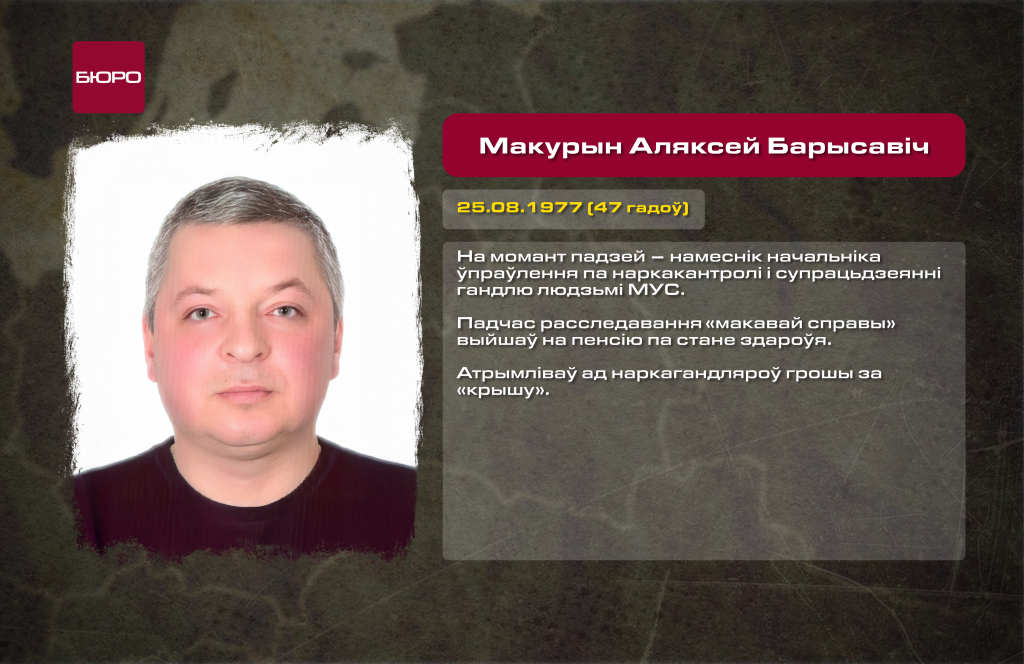 На сустрэчы ён назваўся Аляксеем Барысавічам. Гэтае ж імя назвалі двое фігурантаў «макавай справы», расказваючы пра свае сувязі з сілавікамі. Згадалі яны і прозвішча – Макурын.