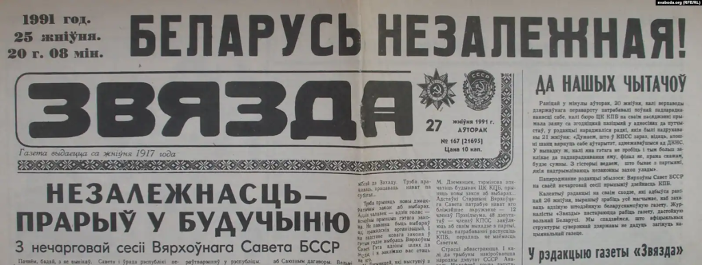 Пасьля прыняцьця Дэклярацыі аб суверэнітэце 27 ліпеня 1990 года і да 25 жніўня 1991-га наша краіна існавала ва ўмовах напаў-незалежнасьці. Вырашальны момант наступіў пасьля таго, як праваліўся праімпэрскі камуністычны путч. Прыгадаем гістарычныя падзеі.