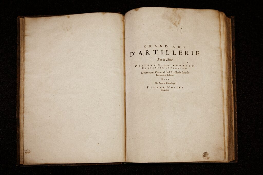 Упершыню кніга “Вялікае майстэрства артылерыі, частка першая” выйшла ў свет у Амстэрдаме ў знакамітым выдавецтве Яна Янсана (Johannes Janssonius) у 1650-ым годзе на лацінскай мове.