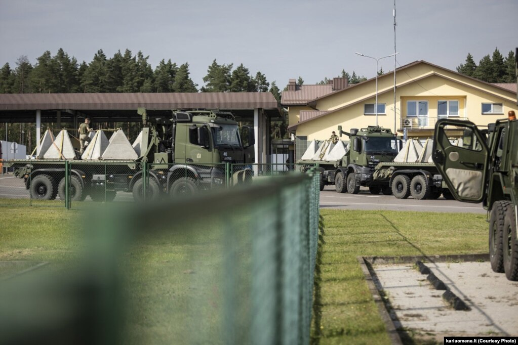Ва Ўзброеных сіла Літвы паведамілі аб усталяваньні на дарогах у закрытых пунктах пропуску на мяжы зь Беларусьсю перашкод, вядомых пад назвай «зубы цмока», якія зьяўляюцца часткай Балтыйскай лініі абароны.