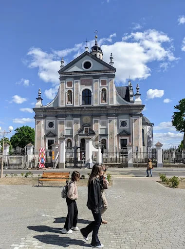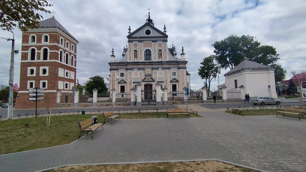 Раней на рагу вуліц Гейсіка і Адама Міцкевіча быў сквер з дрэвамі, якія прыгожа абрамлялі выдатную барочную архітэктуру касцёла, але цяпер усё перамянілася.
