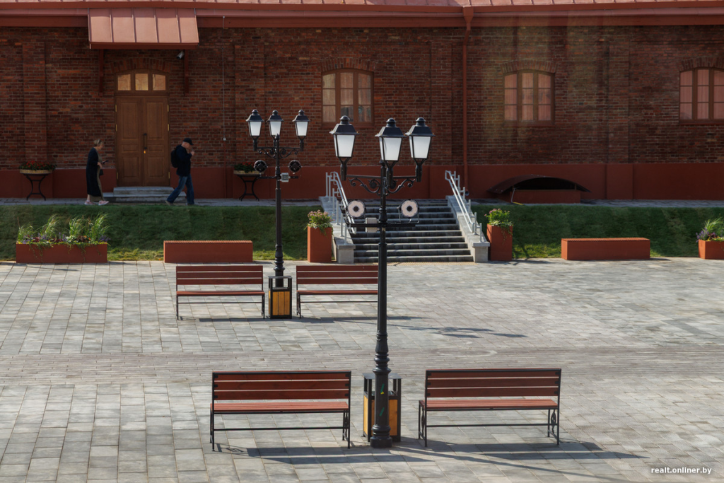 Зрэшты, дурную моду і сюды прыносяць з сабой чыноўнікі, якіх прызначаюць у абласныя цэнтры з правінцыі. Літаральна на днях у Мінску адкрылі пасля рэканструкцыі гаспадарчы двор Лошыцкай сядзібы. У цэнтры замест нармальнага ўпарадкавання — бязмежны пляц з пліткі, пасярод якога гэтак жа сіратліва стаяць тыя самыя каваныя лавы.