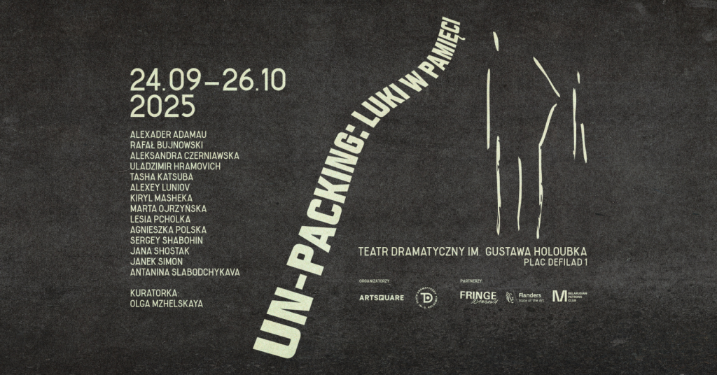 Выстава «Un-packing: Лакуны памяці», якая аб’яднае беларускіх і польскіх мастакоў і мастачак у рамках фестывалю Fringe, адкрыецца 24 верасня ў Варшаўскім Драматычным тэатры. «Un-packing: Лакуны памяці» — гэта візуальна-канцэптуальны працяг спектакля Катажыны Кальват, прысвечаны складанай ідэнтычнасці Падляшша. Рэгіён памежжа, адзначаны этнічнымі і рэлігійнымі напружаннямі, гістарычнай амнезіяй і незагоенымі ранамі, становіцца прасторай мастацкага даследавання і дыялогу.