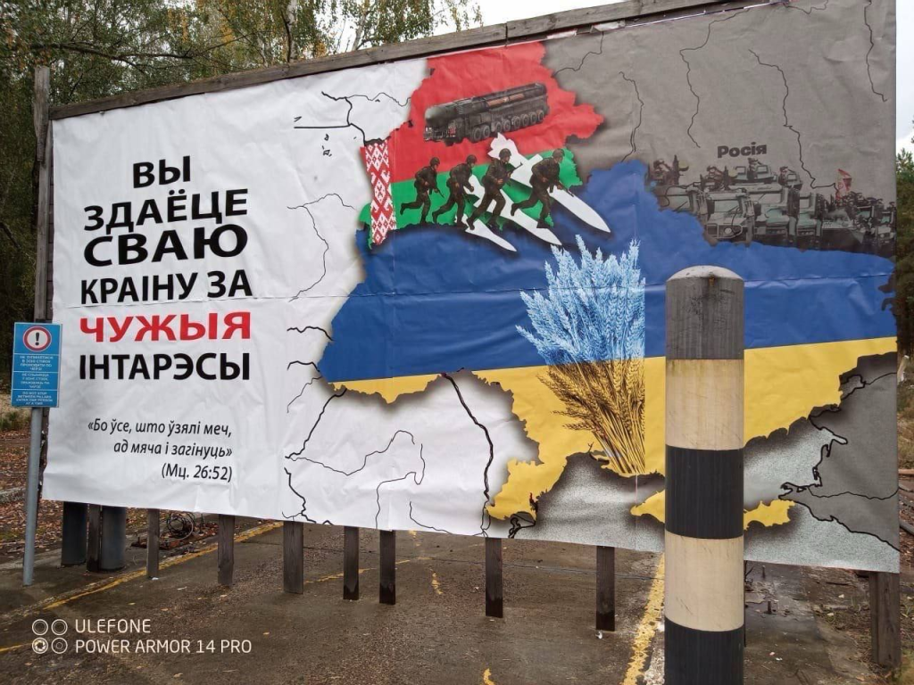 На мяжы Жытомірскай і Гомельскай абласцей новыя бігборды заклікаюць грамадзян Беларусі памятаць, што яны — не расіяне, і не здаваць свае інтарэсы.