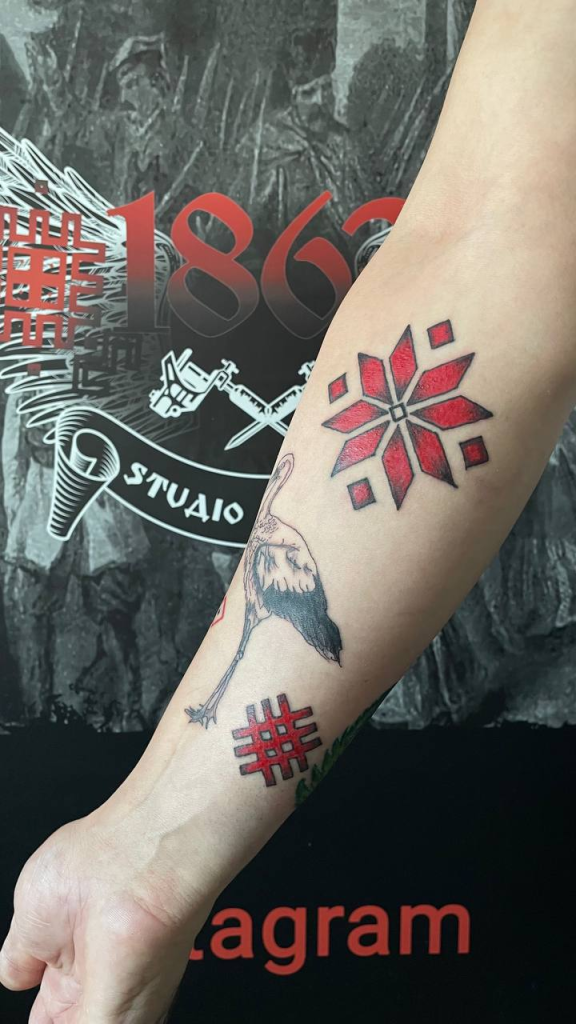 — Да 2020-га попыт быў на татуіроўку, звязаную з этнасам. На традыцыйны беларускі арнамент, сымбалі, звязаныя з Беларуссю. Валошкі, буслы, безумоўна, герб Пагоня.