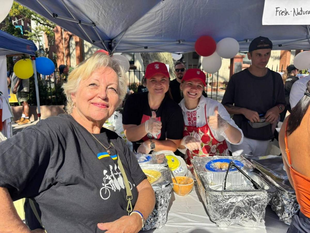 «Нашыя гаспадынькі, — адзначае Аляксандр Хомчанка, — некалькі дзён рыхтаваліся да свята і прыгатавалі вельмі смачныя стравы беларуска-ўкраінскай кухні, такія як: варэнікі, дранікі, галубцы, наліснікі, фрыкадэлькі, кілбаскі, тушаную капустку. Было нагатавана столькі, што хапіла на ўвесь дзень гандлю, і вынік атрымаўся вельмі станоўчы. Стаяла чарга, наша моладзь з нацыянальным сцягам і плакатамі запрашала гасцей да стала.