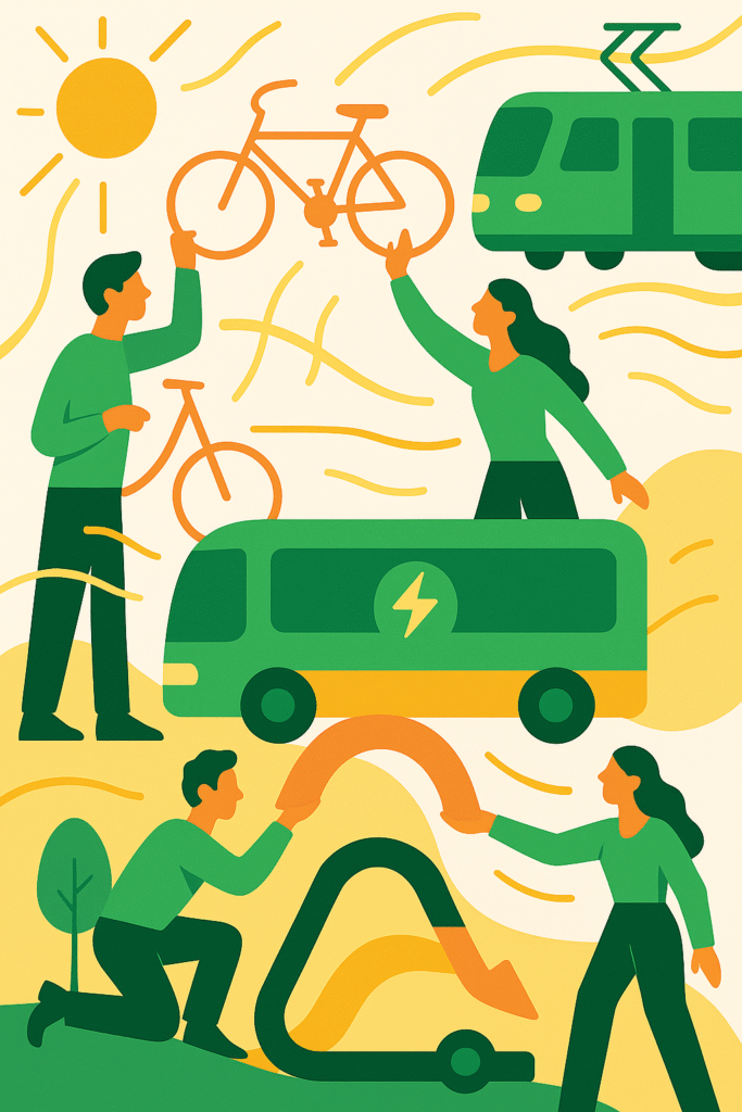 Развіццё устойлівай мабільнасці: папулярызаваць велатранспарт і карпулінг, а таксама распрацаваць планы ўстойлівай гарадской мабільнасці.