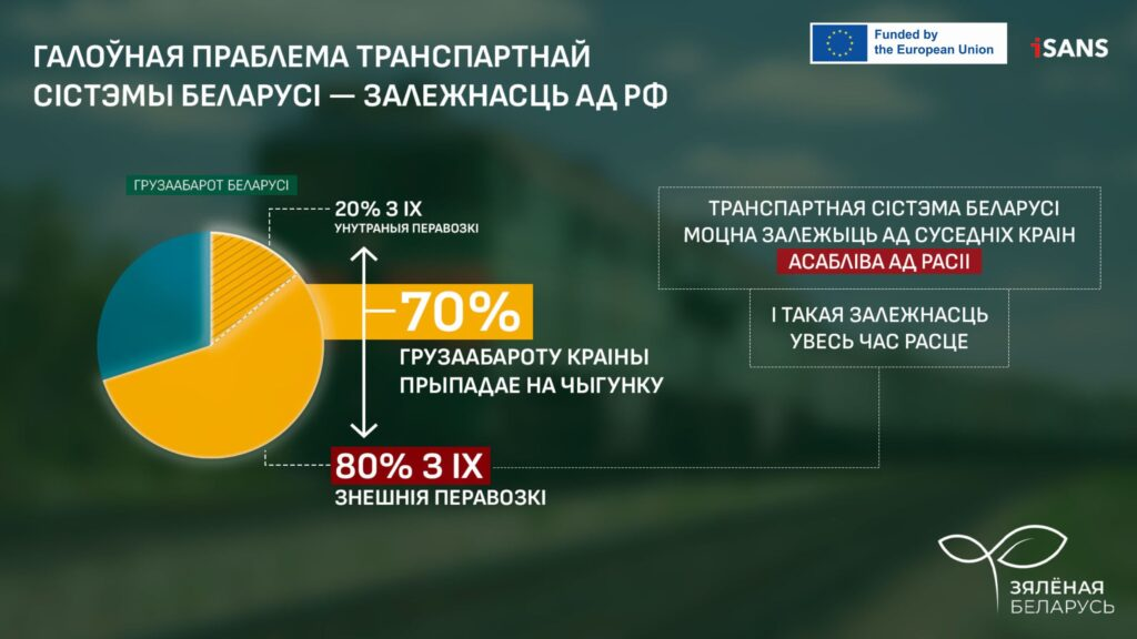 Галоўная праблема транспартнай сістэмы Беларусі сёння — празмерная залежнасць ад аднаго напрамку і адсутнасць альтэрнатыў. 70 % грузаабароту краіны прыпадае на чыгунку, пры гэтым толькі 20 % ад гэтага аб’ёму — унутраныя перавозкі. Гэта значыць, што сістэма моцна залежыць ад суседніх краін, асабліва ад Расіі. Такая залежнасць увесь час расце.