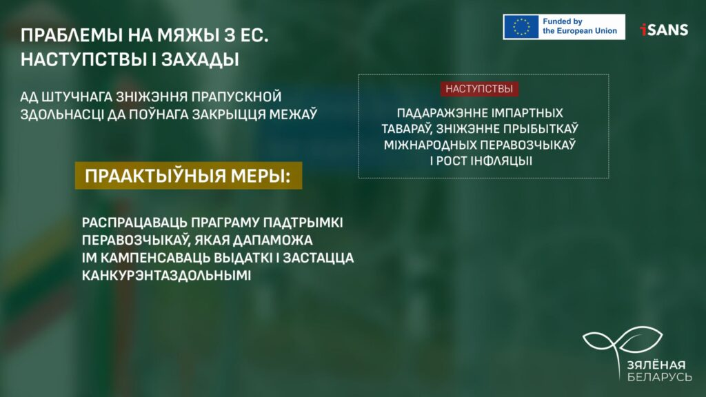 Каб гэтага пазбегнуць, важна распрацаваць праграму падтрымкі перавозчыкаў, якая дапаможа ім кампенсаваць выдаткі і застацца канкурэнтаздольнымі.