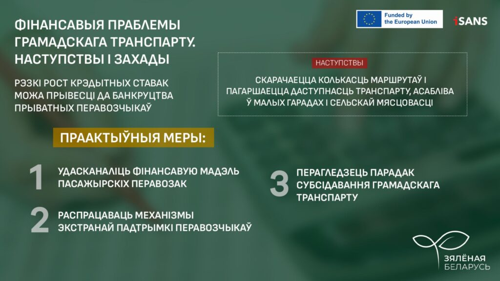 Калі не прадпрымаць ніякіх дзеянняў, ужо праз некалькі год у краіне могуць узнікнуць праблемы з даступнасцю транспарту — у першую чаргу для ўразлівых груп насельніцтва.
