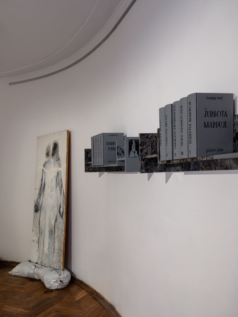 Інсталяцыя Сяргея Шабохіна «Čornaja žoŭć» складаецца з дзвюх кніжных паліц з аб’ектамі і выявамі. Падобныя з выгляду паліцы адрозніваюцца дэталямі, што падкрэслівае зацыкленасць гісторыі і паўсядзённасць трагедый. Асобны элемент — «Чорная жоўць: дзесяць тамоў беларускай літаратуры», шэрыя драўляныя пустыя скрыні-кнігі з надпісамі на лацініцы, якія ўтвараюць своеасаблівую паэзію меланхоліі.