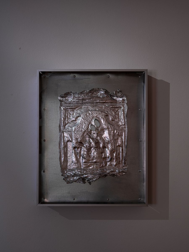 Аляксандр Адамаў у сваёй творчасці даследуе перасячэнне цялеснай уразлівасці і палітычнага кантролю. Аб’ект «RIZA» адсылае да савецкага часу, калі рэлігія, у тым ліку каталіцкая і праваслаўная, была пад забаронай, і вернікі стваралі абразы з падручных матэрыялаў — газет (з прапагандай атэізму) і харчовай фольгі. Прадстаўленая без абраза рыза задае пытанне пра святасць і пра тое, што насамрэч важнае для веры.