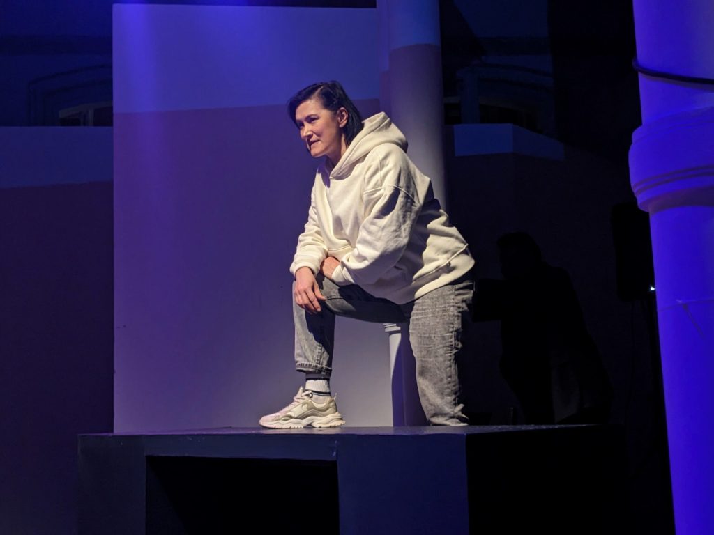 Літаральна на вачах публікі са здзіўляльнай вокаімгненнасцю акторка мяняе вобразы, а, часам, нават на вачах раздвойваецца (дыялог Мар’яны і Уршулі). Назіраць за гэтым надзвычай захапляльна. Да памяці прыходзіць толькі знакамітыя пераўтварэнні брадвейскай зоркі Зэро Мостэля ў спектаклі 1960-х гг. «Насарогі».