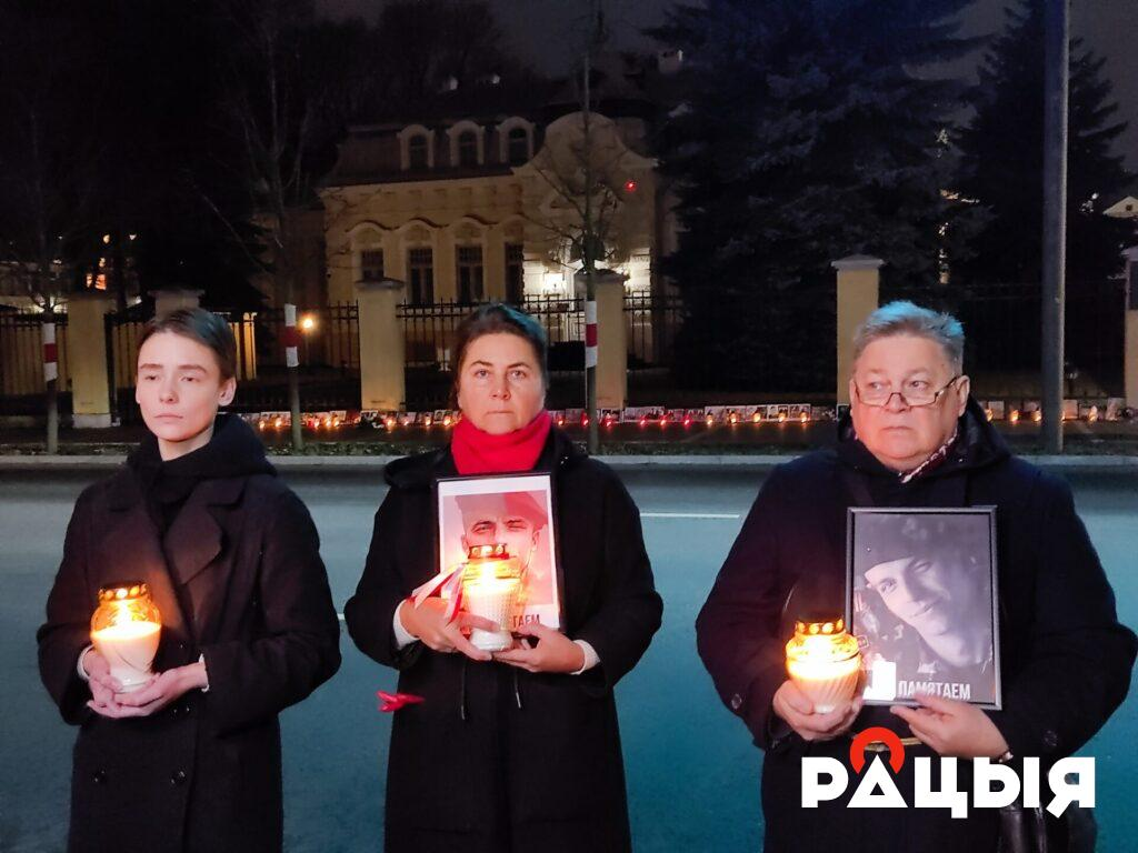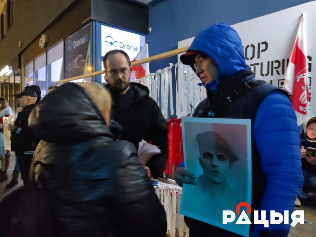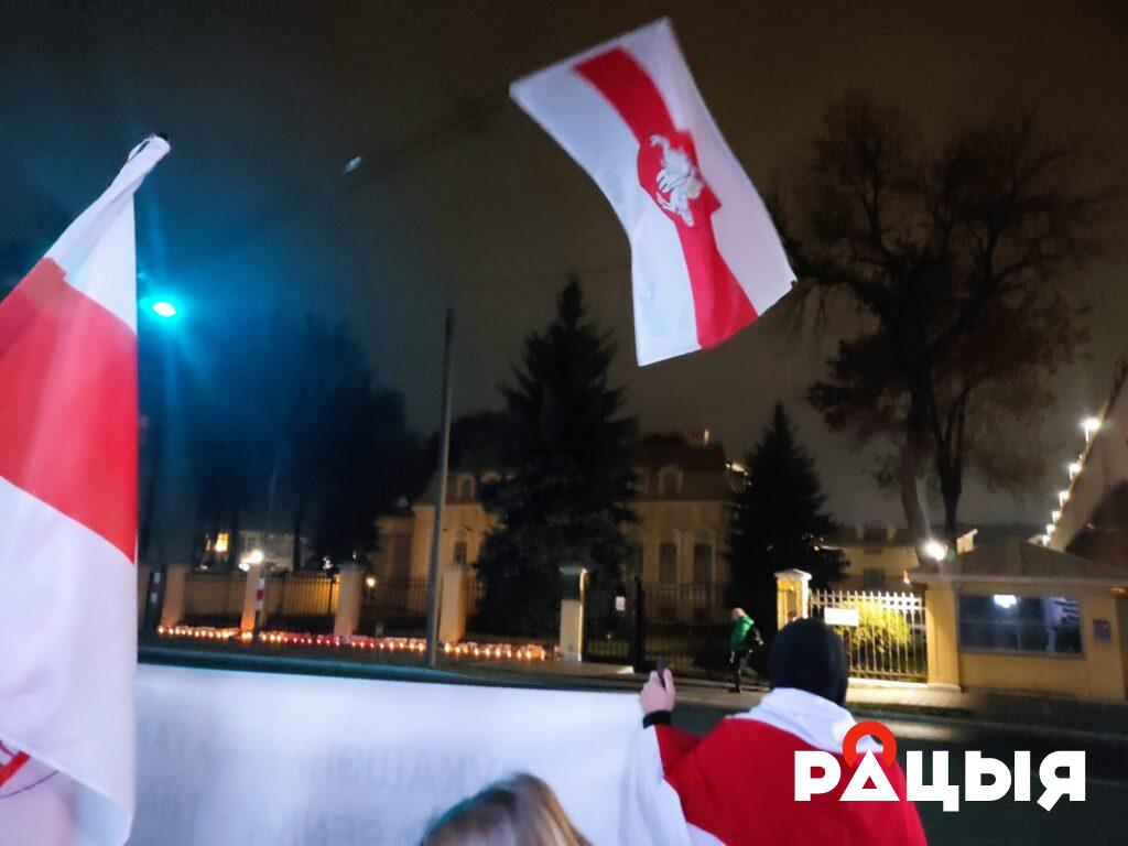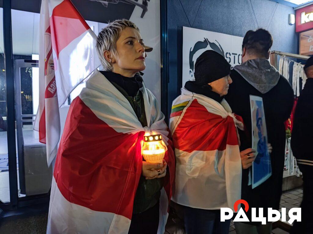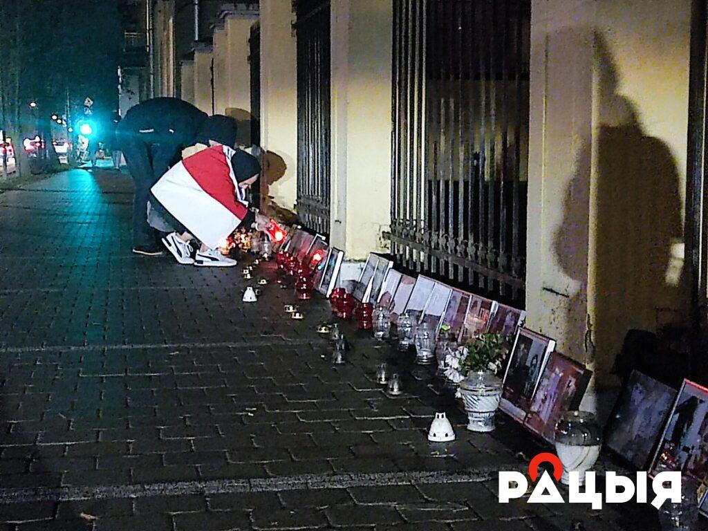 Падчас акцыі ля амбасады Беларусі ў Вільні былі запаленыя лампады і ўскладзеныя кветкі ля партрэта Рамана Бандарэнкі ды іншых загінулых беларусаў. Такіх партрэтаў там ужо каля 80.
