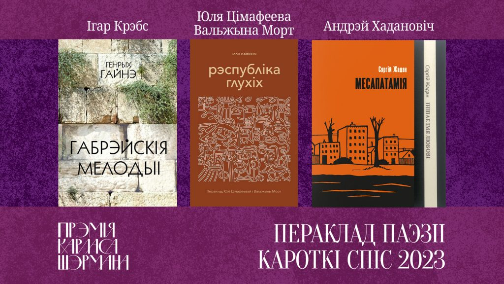 3. Андрэй Хадановіч. Сяргій Жадан* “Іншае імя любові” (выдавецтва hochroth Minsk) і “Месапатамія” (выдавецтва “Янушкевіч”), 2023. Пераклад з украінскай.