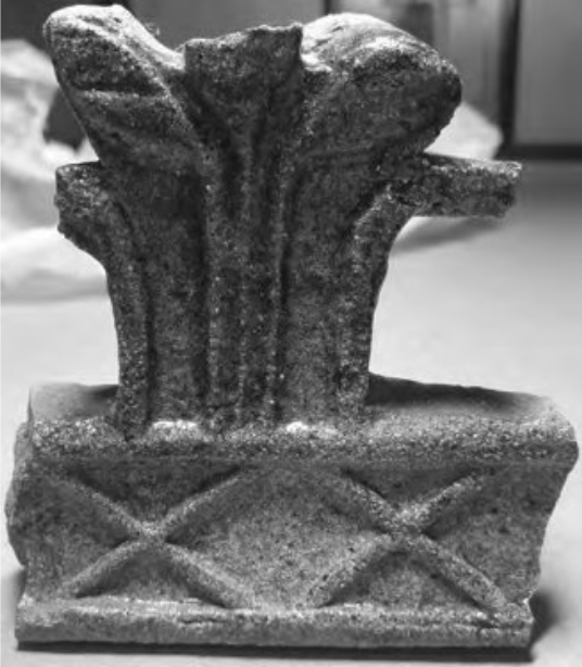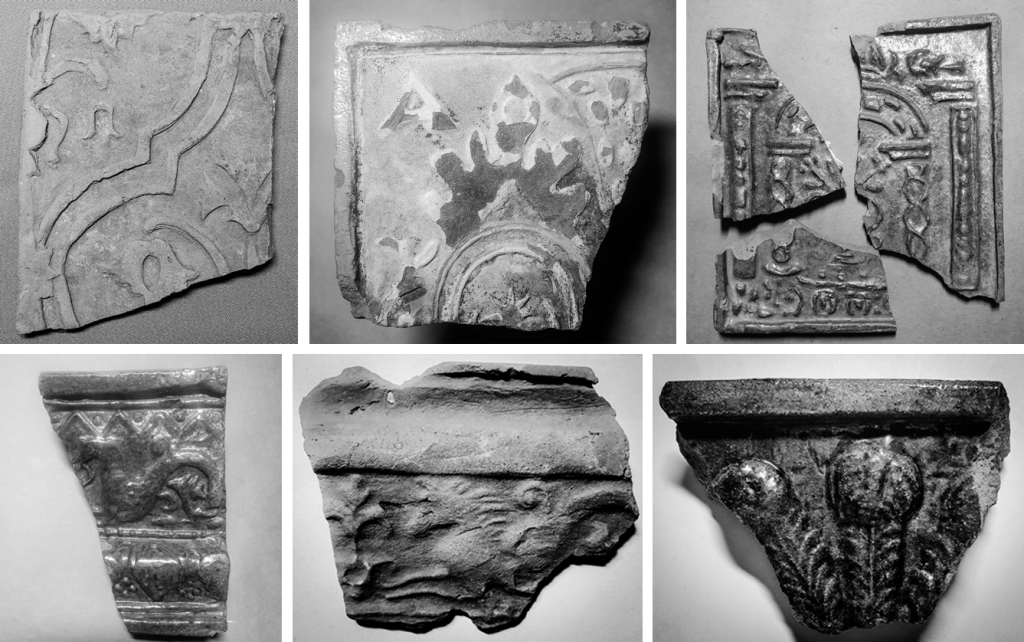 Сярод арнаментальнага россыпу вылучаецца і адзіны паліхромны (на жаль, усе фотаздымкі ў публікацыі чорна-белыя. — НН) фрагмент з выявай герба «Ляліва» — шасціканцовай зоркі над месяцам. Гэта знак прысутнасці эліты: такім гербам карысталіся магутныя роды Тышкевічаў, Глябовічаў і Манівідаў. Наяўнасць такога экзэмпляра сведчыць пра тое, што мясцовыя майстэрні выконвалі і індывідуальныя шляхецкія замовы высокага ўзроўню.
