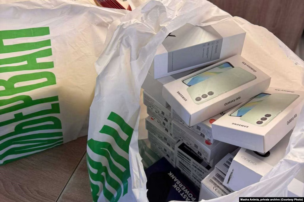 «Паўэрбанкі вельмі цяжкія, неймаверна цяжкія. Я ніколі ня думала, што гэта можа быць так цяжка. Я не магла адну скрыню адарваць ад зямлі. Тэлефоны лягчэйшыя», — дзеліцца суразмоўца.