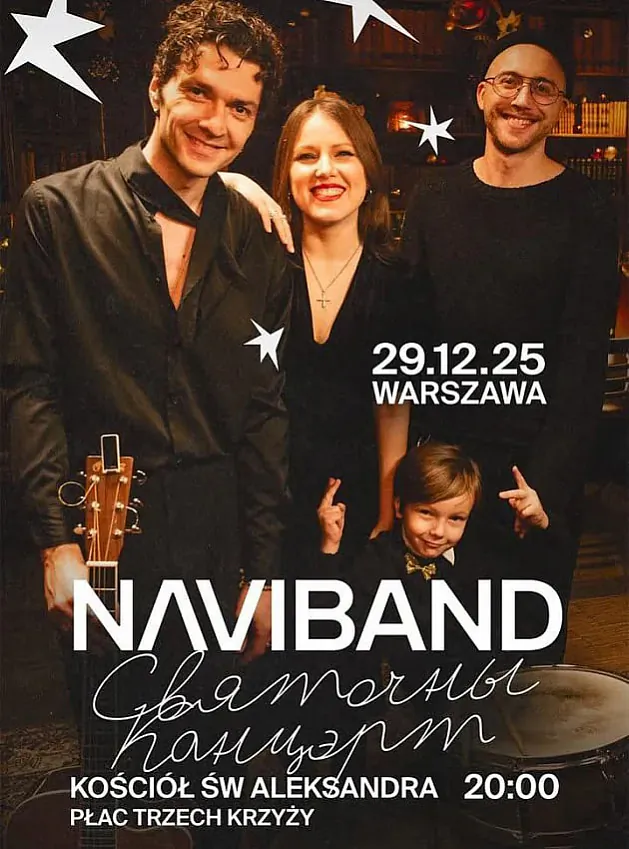 29 снежня, у панядзелак, коцікі вашых сардэчак NAVIBAND граюць утульны калядны канцэрт у варшаўскім касцёле (Kościół św. Aleksandra, plac Trzech Krzyży). Квіткі каштуюць ад 129 злотых.