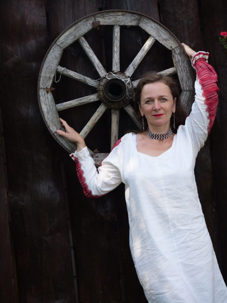 Не перадаць, калі ты апранаеш гэты строй, а там усё шматслойнае. Сарочку апранаеш, потым камізэльку, потым панёва, фартух, хустку, яна таксама ў іх там цалкам-цалкам тканая, – і гэта, канешне, неймавернае адчуванне. Я заўсёды лавіла сябе на думцы: «Я каралева, я ў каралеўскім убранні». Ну і, канешне, сам лён неймаверна тактыльна вельмі-вельмі прыемны. Ён такі мяккі. Гэта былі ужываныя сарочкі, якія насіліся, то бок, ён ён ужо такі ношаны, мяккі вельмі. І яшчэ вельмі добра памятаю адчуванне такое натуральнае, камфортнае.
