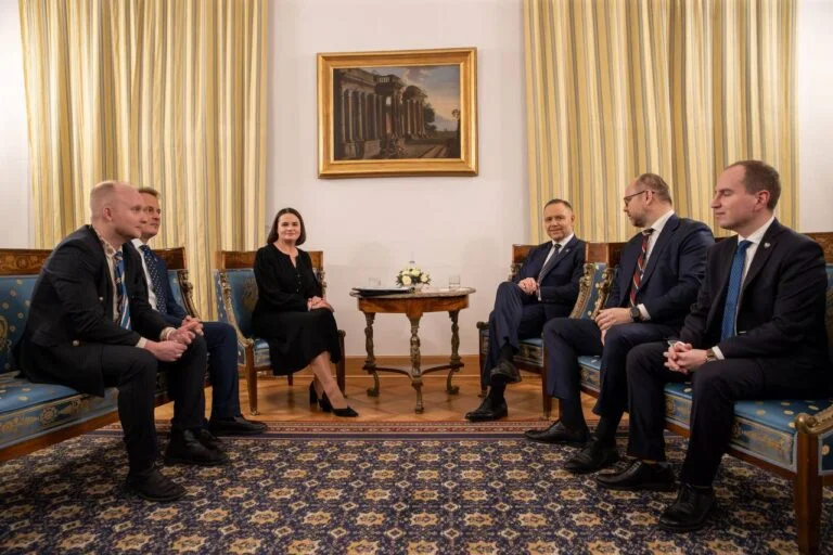 Святлана Ціханоўская падзякавала прэзідэнту і Польшчы за падтрымку Беларусі і беларусаў, за паслядоўную і прынцыповую пазіцыю, падтрымку вызваленых палітвязняў, рэпрэсаваных і дэмакратычнага руху. Адзначыла, што беларускае пытанне ў Польшчы аб’ядноўвае і ўрад і апазіцыю, і ўсе палітычныя партыі. Ціханоўская распавяла пра прыярытэты дэмакратычных сілаў, як за мяжой, так і ўнутры краіны.