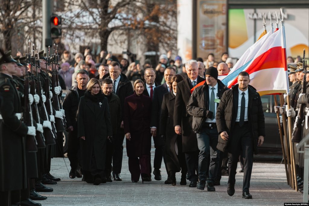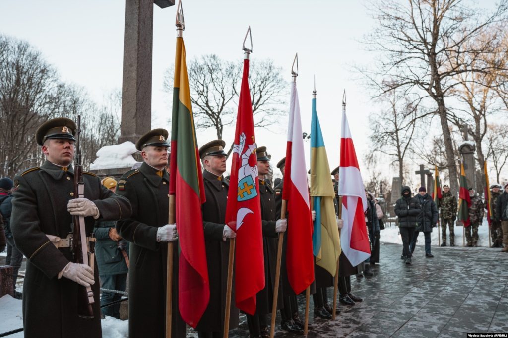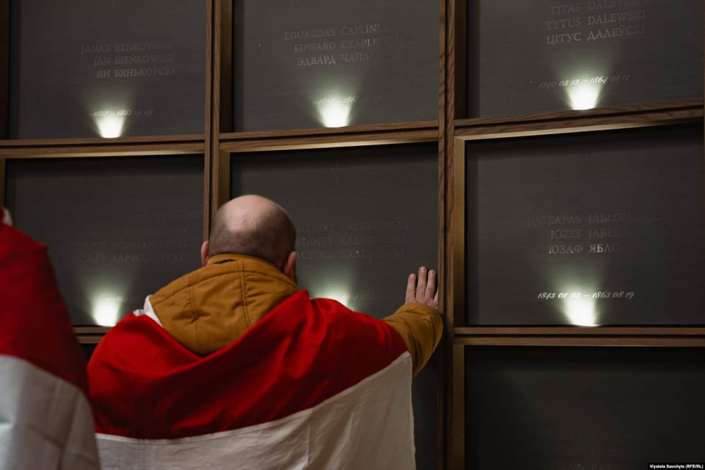 Каля капліцы зьнерухомелі салдаты літоўскай ганаровай варты. У руках вайскоўцаў — дзяржаўныя сьцягі Літвы, Польшчы, Украіны, а таксама бел-чырвона-белы сьцяг, які прадстаўляе дэмакратычную Беларусь. У капліцу зь вянкамі і кветкамі заходзяць прэзыдэнт Літвы Гітанас Наўседа і літоўская прэмʼер-міністар Інга Ругінене, прэзыдэнт Польшчы Караль Наўроцкі, прэзыдэнт Украіны Ўладзімір Зяленскі, а таксама лідэрка дэмакратычнай Беларусі Сьвятлана Ціханоўская. Пасьля ўрачыстай імшы, хвіліны маўчаньня і ўскладаньня вянкоў усе выходзяць на ганак. У памяць пра паўстанцаў ганаровая варта робіць некалькі залпаў. Калі дэлегацыі высокіх палітыкаў выходзяць на вуліцу, іх вітаюць дзясяткі актывістаў.