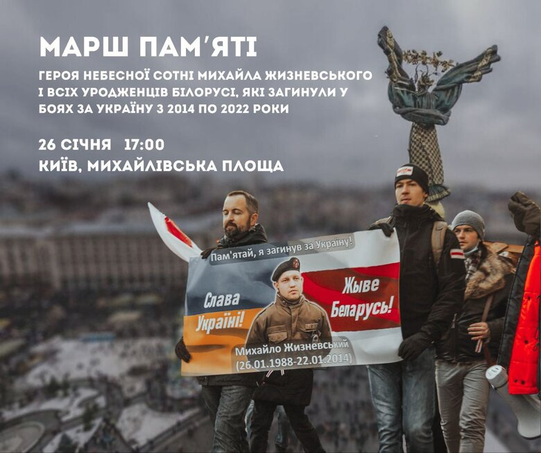 Міхась Жызнеўскі загінуў 22 студзеня 2014 года ў Кіеве падчас Еўрамайдану. 26-га студзеня 2026 года ему магло б споўніцца 38 гадоў. Марш памяці ў Кіеве, на якім цяпер прыгадваюць усіх беларусаў, што аддалі сваё жыццё за Украіну, традыцыйна праходзіць у дзень народзінаў Міхася Жызнеўскага. Сёлета асаблівасць марша ў тым, што ён праходзіў ва ўмовах блэкаўту.