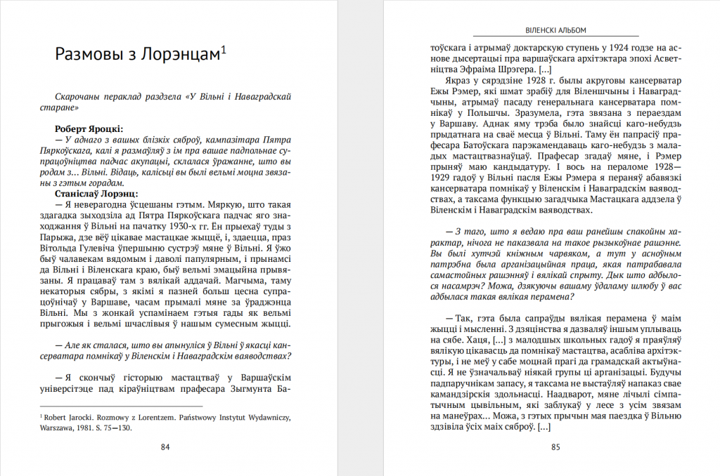 Пісьменнік і краязнавец Леанід Лаўрэш апублікаваў дзве кнігі, якія знаёмяць чытача з гісторыяй міжваеннай Вільні і Заходняй Беларусі агулам. Адна з іх — скарочаны пераклад “Віленскага альбому” Станіслава Лорэнца, другая — зборнік выбраных артыкулаў віленскага пісьменніка і журналіста Юзафа Мацкевіча. Тэксты перакладзеныя з польскай мовы і даступныя для вольнага спампоўвання ў фармаце PDF на сайце Academia.edu.