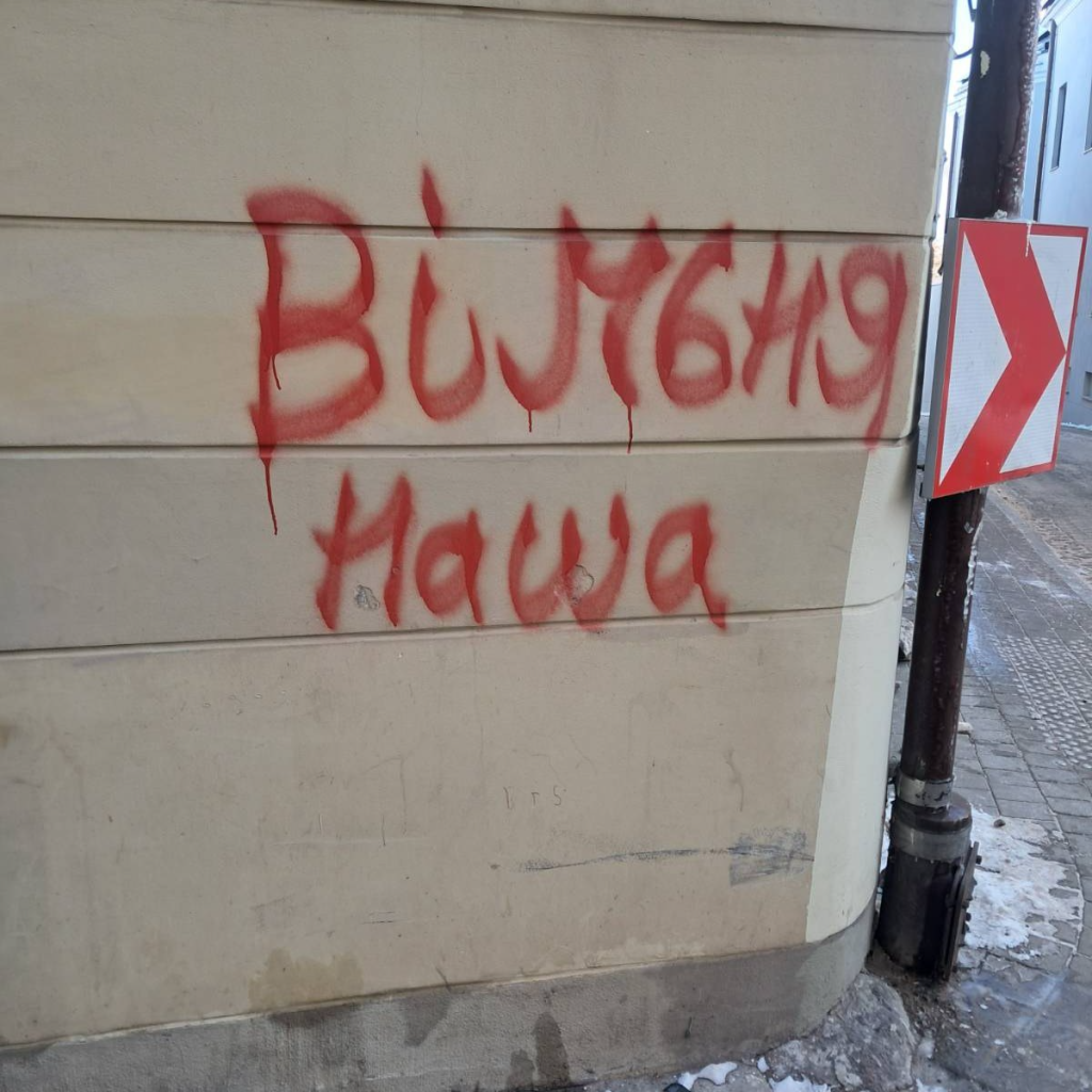 Месца было выбрана невыпадкова — такім чынам наўмысна імкнуліся стварыць уражанне, нібыта гэта з’яўляецца пазіцыяй самой супольнасці, распальваючы напружанасць і кампраметуючы яе ў вачах літоўскага грамадства. Гэты надпіс ні ў якім разе не адлюстроўвае поглядаў нашай супольнасці.