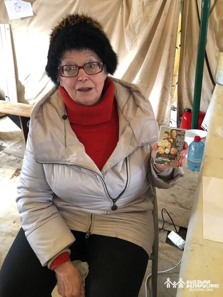 «Я не маю шмат, — расказвае жанчына, — але мне вельмі хацелася нешта падараваць. Я знайшла касету беларусаў і падумала, што беларусам будзе прыемна яе атрымаць. Тут цёпла і добра. А дома — восем градусаў. Было дванаццаць, а калі разбамбілі цеплаэлектрастанцыю, стала восем. Холадна».