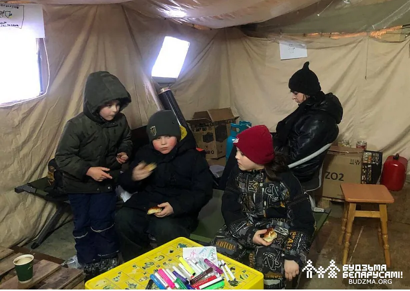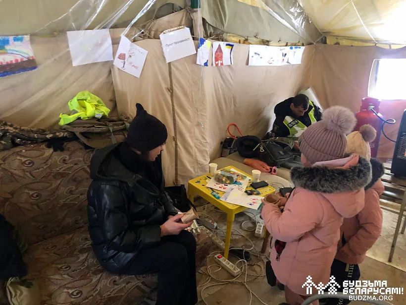 Тады я напісала пост ад сябе, прыклала пару скрыншотаў — і да нас пачалі далучацца беларусы. Першая дапамога прыйшла з Амерыкі. Беларускія дабрачынцы з ЗША сказалі: «Давайце мы набудзем намёт». І ўсё — яны дапамаглі нам яго набыць. Потым мы купілі генератар, некалькі неабходных рэчаў — і засяліліся сюды».