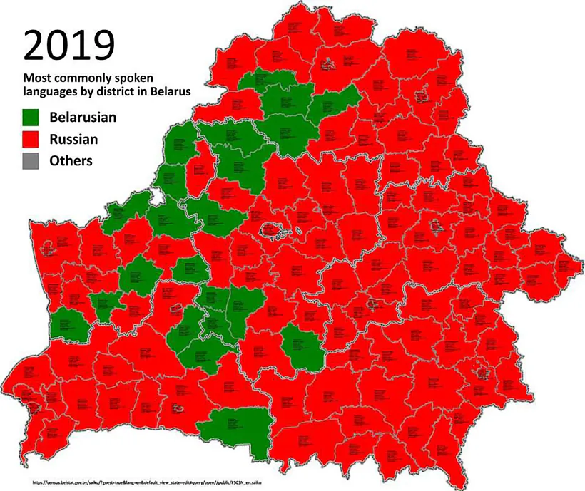 Пакажэце мне хаця б адзін прыклад, калі б нейкі беларускі чыноўнік заяўляў пра тое, што «расейская мова — бедная мова, у сьвеце існуюць толькі дзьве вялікія мовы — ангельская і беларуская». Згадайце хаця б адну кпіну ў бок расейскамоўнага выразу «скоростной режим» і патрабаваньне неадкладна замяніць яго на нармальны «хуткасны рэжым».