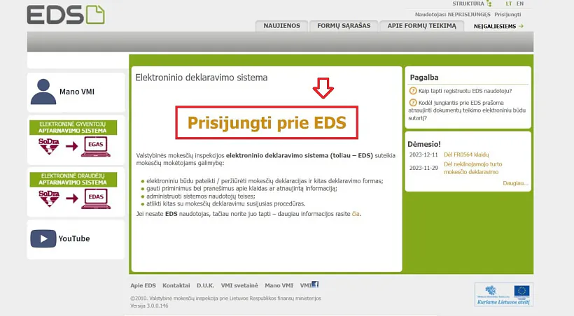 І апошні крок: націскаеце «Pateikti»/«Адправіць», каб адправіць запыт EDS у Дзяржаўную падатковую інспекцыю.