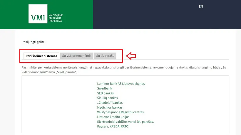 1. Увайдзіце ў сістэму электроннага дэкларавання (EDS) ČIA. Увайсці ў EDS можна праз знешнія сістэмы (напрыклад, праз банкінг ці праз электронны подпіс).