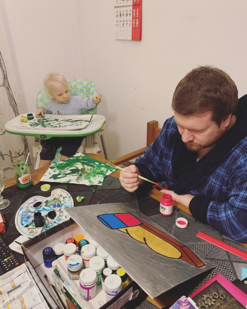 — У мяне з’явіўся «дзіцячы» перыяд у жыцці, як ва ўсіх бацькоў. Кожны дзень я чытаў дзіцячыя кніжкі. За першы год жыцця сына ў мяне назапасілася некалькі дзясяткаў кніг — Андэрсан, браты Грым… Зразумела, што я гэта фільтраваў, бо калекцыя братоў Грым была без цэнзуры ў першых выданнях, і зразумела, не ўсё можна прачытаць дзіцёнку. Калі пачаў адкрываць для сябе больш падрабязна свет дзіцячых кніг, зразумеў, што мяне гэта вельмі моцна зацягвае і ўражвае. Мы кожны вечар чытаем. А дзевятай вечара пачынаецца — і ўсё, і панеслася.