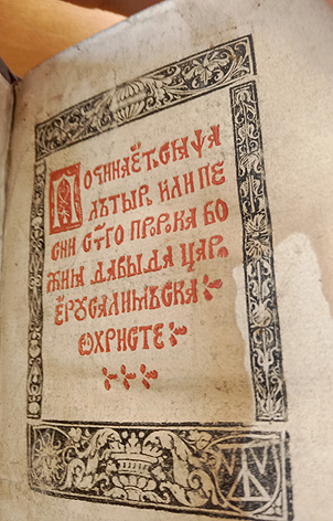 Справа ўверсе нехта напісаў алоўкам «Psalter Slavon» (Славянскі псалтыр), а злева тым жа почыркам напісана і перакрэслена слова «Polotzk» (Полацк) — родны горад Скарыны.