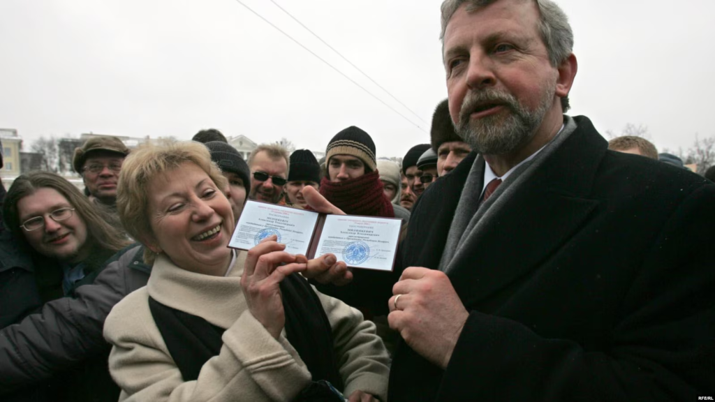 — Гэта была адна з начэй, калі мы не засталіся. Мы здымалі двухпакаёўку каля аэрапорту, з намі жыў прэс-сакратар, памочнікі. Прыходзілі туды і начаваць, і дняваць — паспаць пару гадзін пасьля ночы на Плошчы. Прыехалі мы туды каля 12-й начы пасьля наўпроставага эфіру Радыё Свабода — размаўлялі з журналістам Валерам Каліноўскім. Зьбіраліся крыху паспаць і, а 5-й раніцы вярнуцца на плошчу. А другой гадзіне начы нам патэлефанаваў тагачасны амбасадар Вялікай Брытаніі ў Беларусі Браян Бэнэт. Ён быў першым, хто нам паведаміў, што намётавае мястэчка разганяюць. У тую ноч быў на Плошчы і наш сын Ігар. Мы вельмі хутка прыехалі туды, але засталі ўжо трактары і бульдозэры, якія зачышчалі тэрыторыю. Было вельмі горка ўсьведамляць, што адбылося…