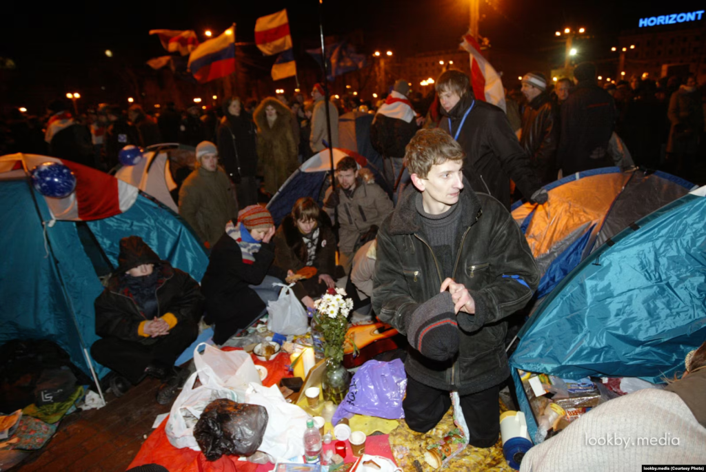 — У штабе гучалі прапановы арганізаваць намётавае мястэчка. Ня ўсе пагаджаліся, былі спрэчкі. І ў першую чаргу не таму, што гэта ня варта, няправільна, гэта непатрэбны пратэст, а таму, што трэба было запэўніць людзям бясьпеку. Па-другое — гэта цэнтар гораду, было зразумела, што ўлады не дазволяць доўгі час існаваць гэтаму пратэсту. Намёты рыхтаваў і штаб Мілінкевіча, але тыя штабныя намёты, на жаль, не ўдалося даставіць на Плошчу — людзей зь імі затрымалі ў парку Янкі Купалы.
