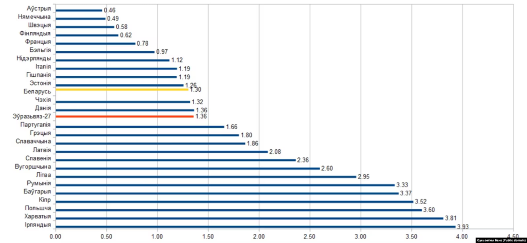 Параўноўваць Беларусь з усім Эўразьвязам не выпадае. Эканамічны рост — такая рэч, што калі ты бедны, табе хутка расьці значна прасьцей. У нас фундамэнтальныя перадумовы для росту даволі добрыя і нас варта параўноўваць з нашымі суседзямі ў Эўразьвязе. Іхныя тэмпы росту — гэта для нас узор. А паколькі Беларусь бяднейшая і за іх, то мы павінны разьвівацца хутчэй за іх, з штогадовым тэмпам прыкладна 4–5%. Для нас арыентыр — ня ўвесь ЭЗ, а нашыя суседзі і ў цэлым Усходняя і Цэнтральная Эўропа.