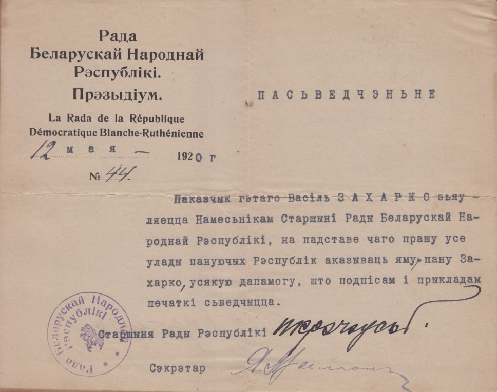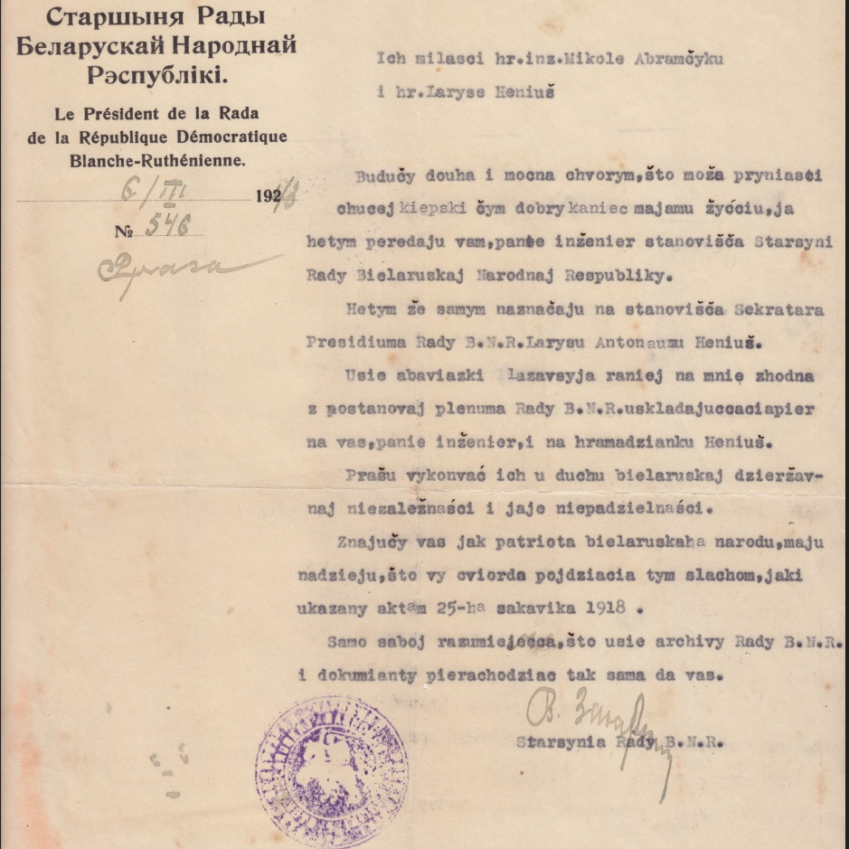 У дакуменце наўпрост прадпісвалася: «Само сабой разумеецца, што ўсе архівы Рады Б.Н.Р. і дакументы пераходзяць таксама да вас». Гэтую частку архіва Абрамчык здолеў вывезці з Прагі і зберагчы нават нягледзячы на арышт гестапа і наступную высылку ў Францыю.